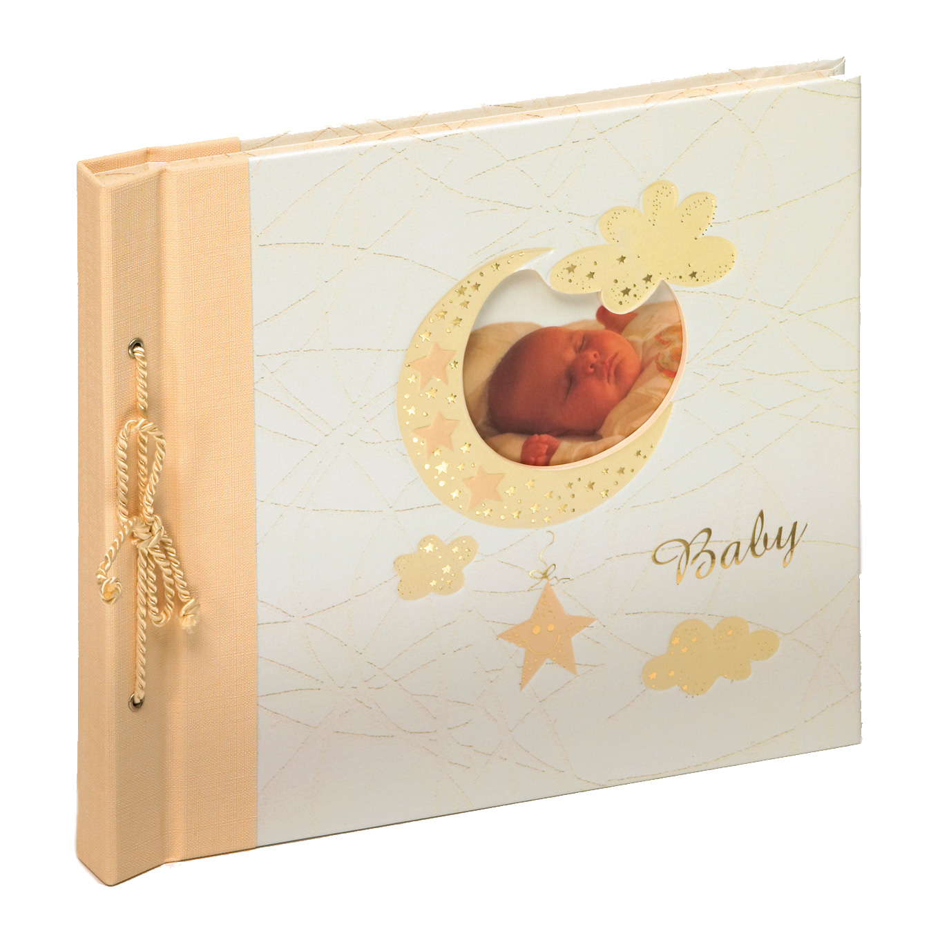 Meget sødt og yndigt baby fotoalbum med ca. 60 hvide blanke sider og 4 introduktions sider med linier - adskilt af pergamentpapir. På forsiden er det muligt at indsætte sit eget billede. Siderne er blanke så du er ikke afhængig af billeder i en bestemt størrelse. Der kan selvfølgelig også indsættes andre minder på siderne, så det ikke bliver glemt. Husk at tilkøbe dobbelt klæbende tape til indsættelse af billeder.