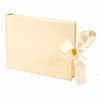 Håndlavet bryllupsalbum i offwhite læder look med "Wedding" trykt på forsiden. Albummet har lyse blanke sider med flosset kant, som er adskilt af pergament. Fotoalbummet kan lukkes med lys satinsløjfe. Albummet har ca. 50 sider.