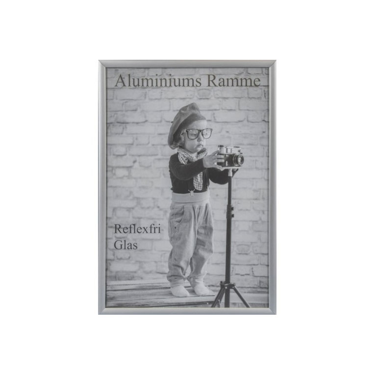 Den klassiske fotoramme med kant i mat sølv alu og refleksfri glas. En holdbar og altid stilren fotoramme, som kan bruges til både billeder, plakater og børnetegninger. Fotorammen kan hænge både lodret og vandret.